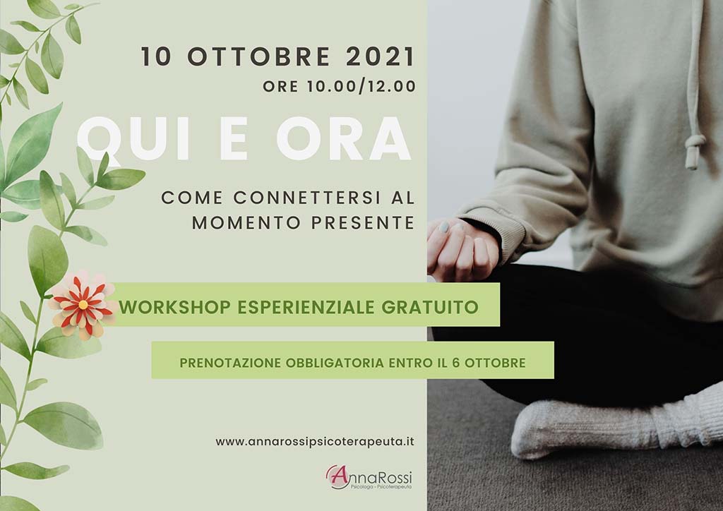 Il workshop è gratuito. Necessaria la prenotazione entro il 6 ottobre 2021 mandando una mail a annarossipsicoterapia@gmail.com o un messaggio a 350.0483267/380.9046521.